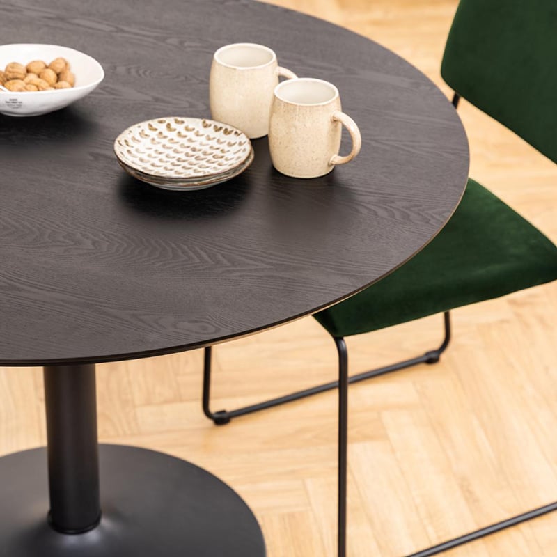 Table à manger ronde Eliza en frêne noir et métal - Ø110 cm