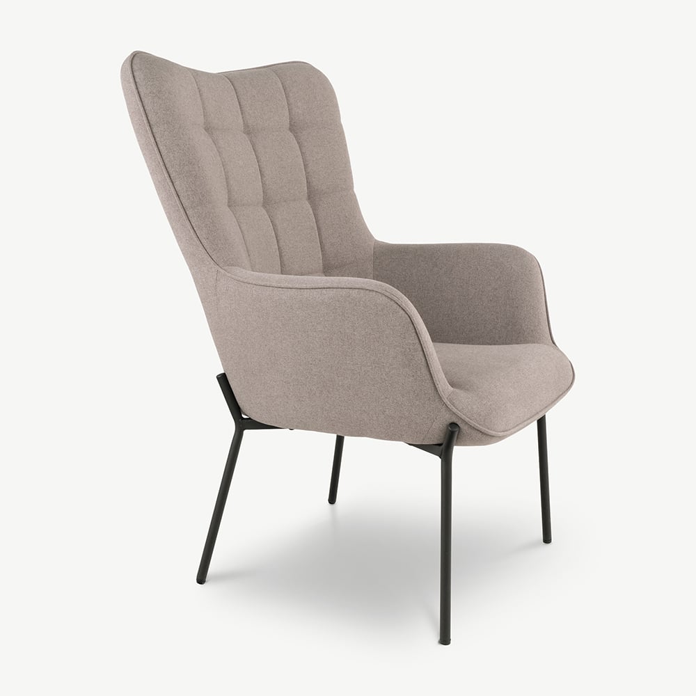 Fauteuil de salon Dublin en tissu gris pierre avec pieds en métal noir et capitonnage - Design scandinave