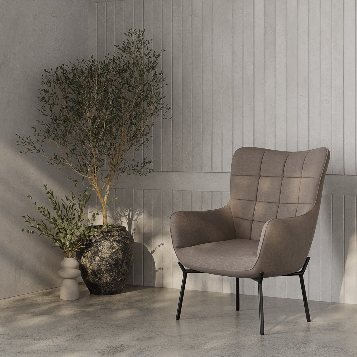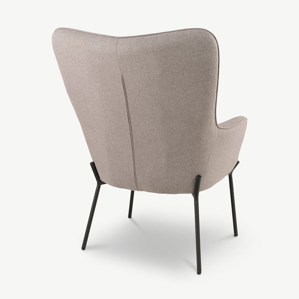 La forme ergonomique et le dossier haut offrent un soutien optimal, tandis que l’assise rembourrée et les accoudoirs capitonnés procurent un confort enveloppant, idéal pour lire, recevoir ou se détendre après une longue journée. Grâce à son cadre métallique robuste, ce fauteuil est conçu pour résister à un usage quotidien.