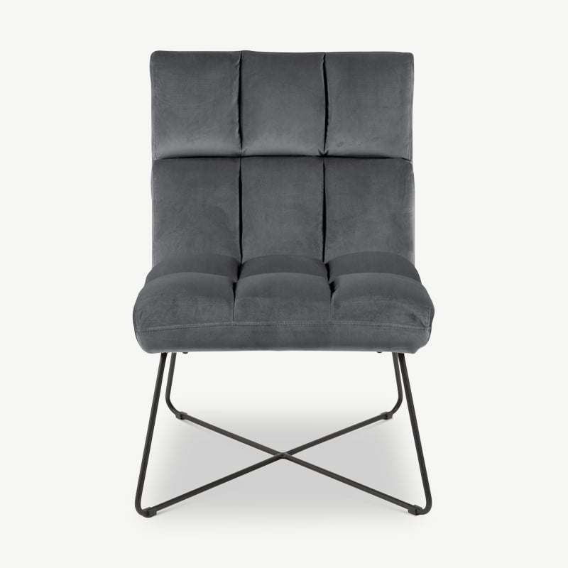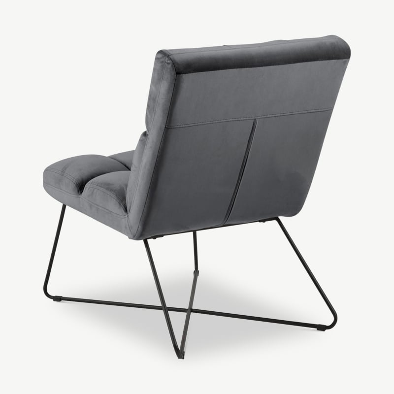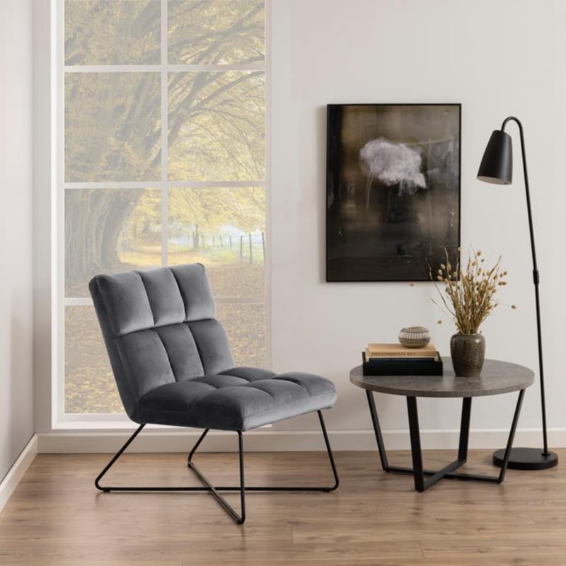 Fauteuil lounge Liam, velours gris & pieds noirs