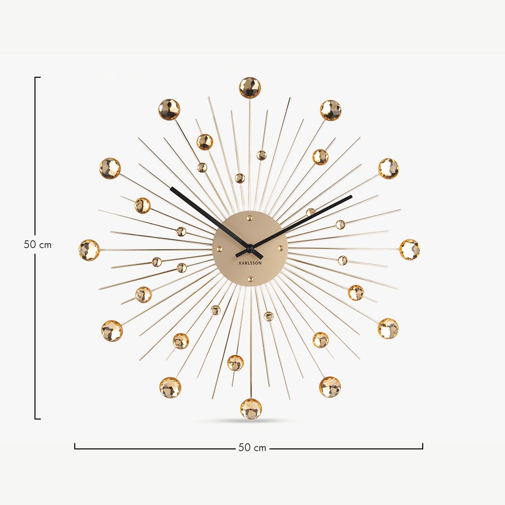 Découvrez la grande horloge murale Burst en cristal doré