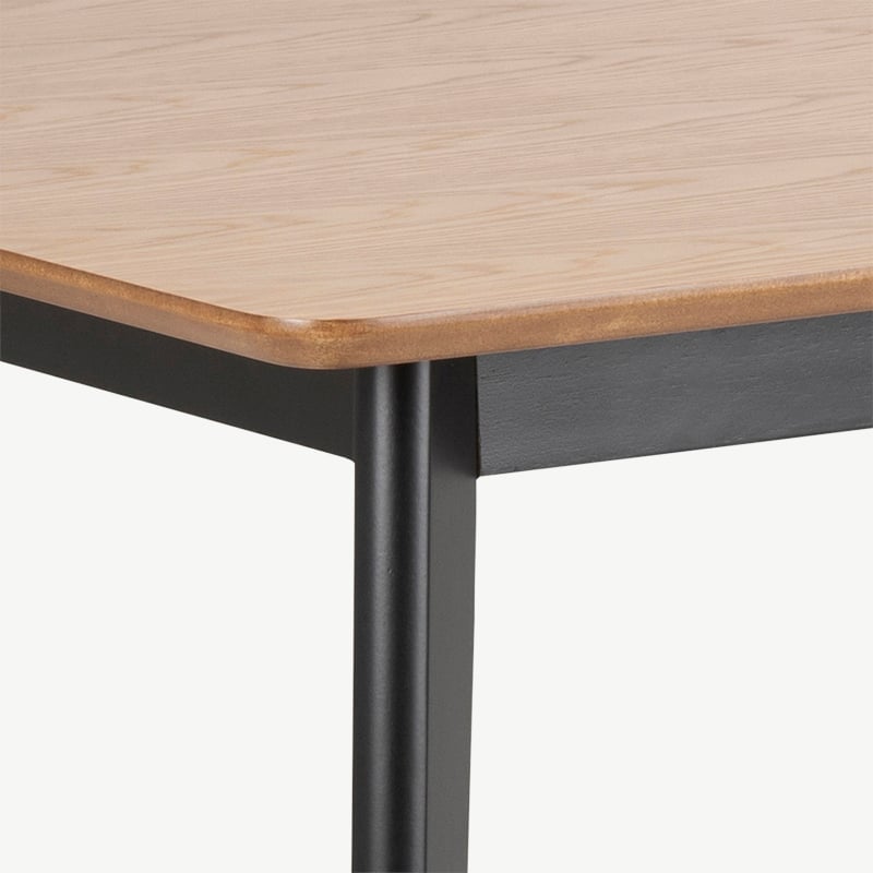 Le plateau en placage de chêne naturel met en valeur la beauté du grain du bois et offre une finition organique et durable. Les pieds en bois noir apportent un contraste moderne et s’harmonisent parfaitement avec des intérieurs scandinaves, industriels ou minimalistes. Associez-la à des chaises en bois, en tissu ou en cuir pour créer une ambiance repas cohérente et élégante.