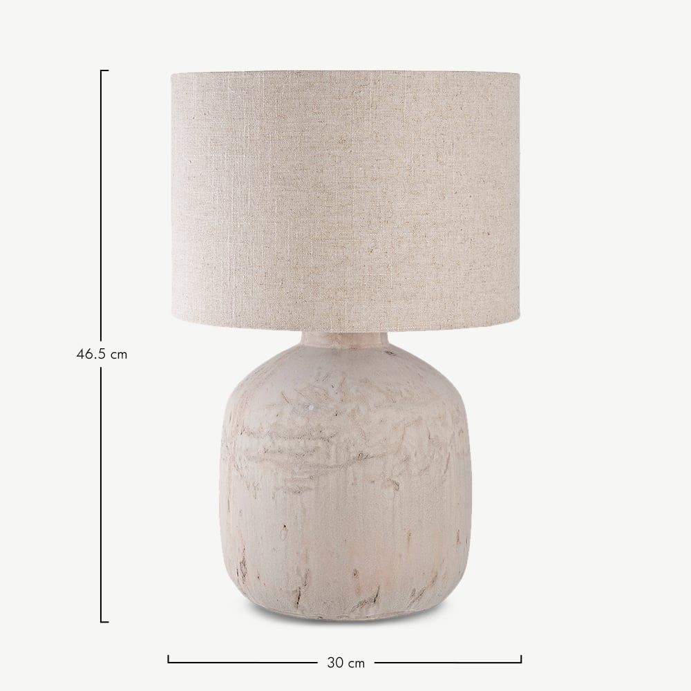 Fabriquée en papier mâché durable, cette lampe arbore une apparence saisissante d'effet pierre tout en restant légère. La teinte beige pierre se marie parfaitement avec des meubles en bois naturel, des textiles neutres et des accents métalliques, s'adaptant ainsi à divers styles d'intérieur.