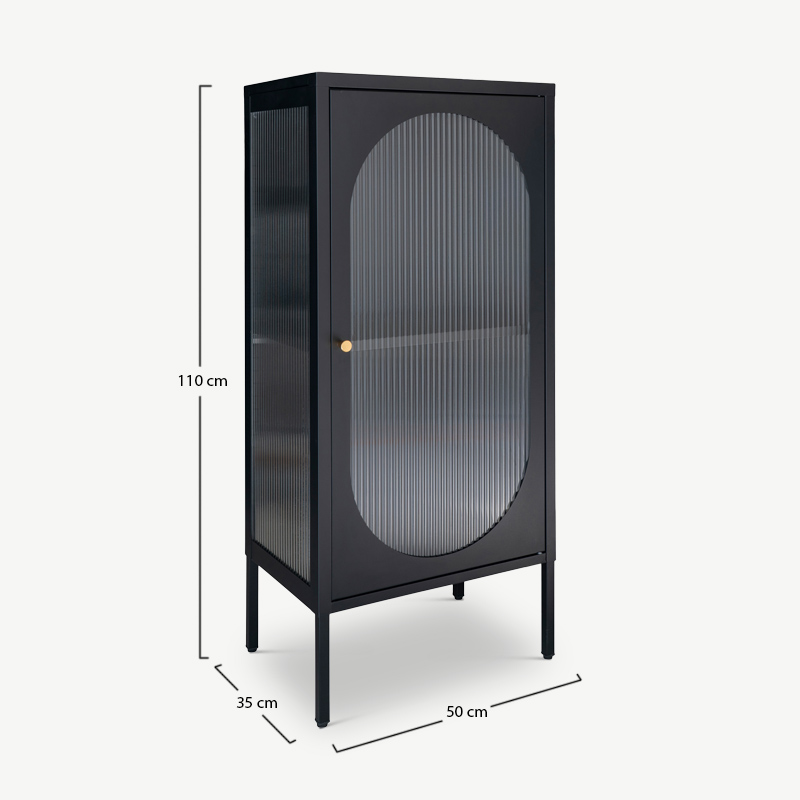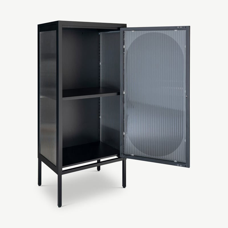 Petite vitrine en métal Hobart avec porte en verre nervuré – Design industriel avec touche Mid-Century
