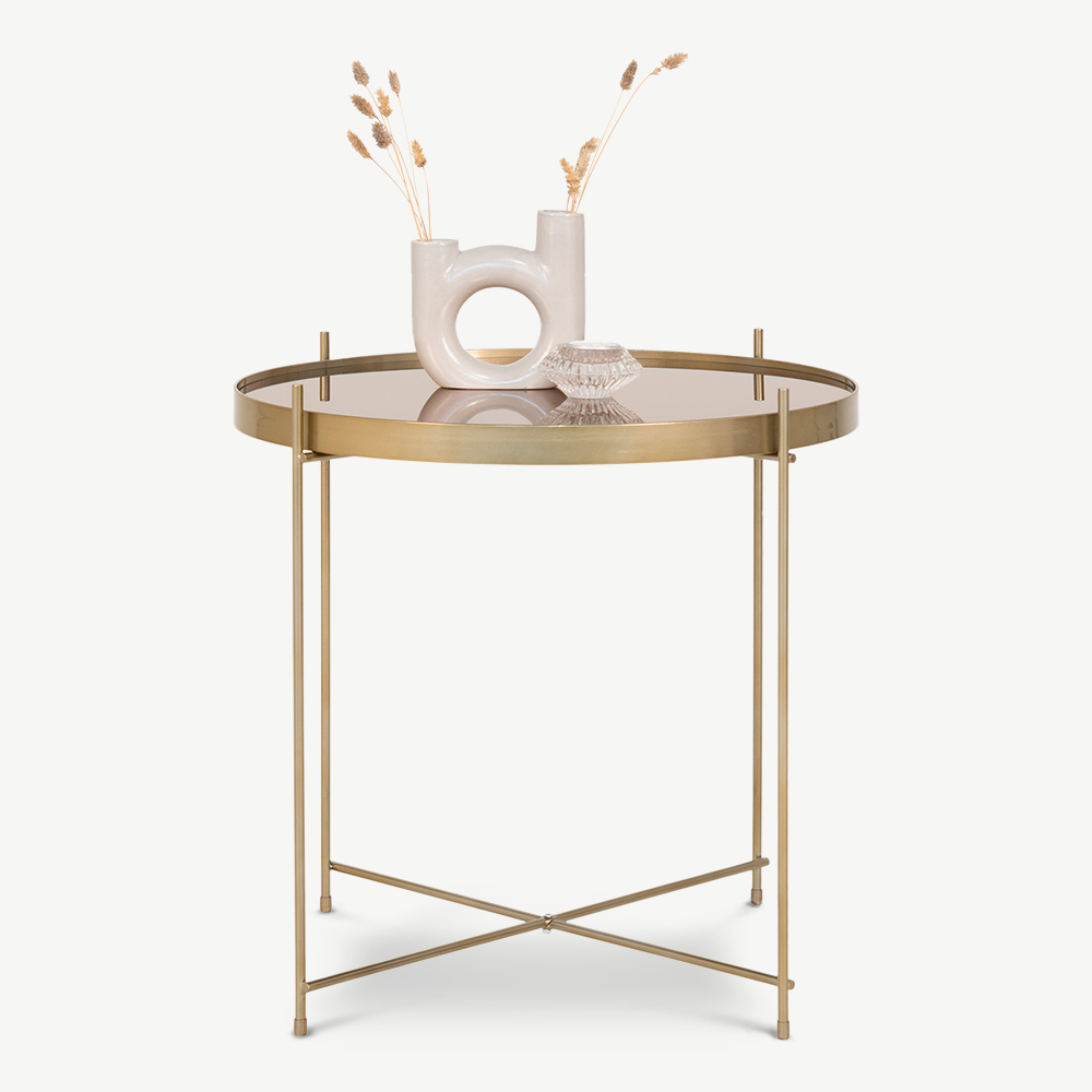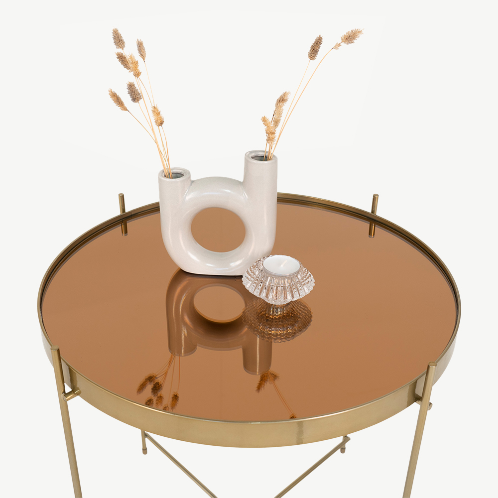 Avec sa forme ronde, sa finition en laiton et son plateau en verre, la table Roma apporte une touche d’élégance et de sophistication à n’importe quelle pièce. Son cadre minimaliste et son design épuré mettent en valeur l’espace tout en ajoutant une touche de glamour. Que ce soit à côté d’un canapé, dans un coin ou comme élément d’un ensemble coordonné, elle crée un environnement élégant et accueillant pour le quotidien ou les réceptions.