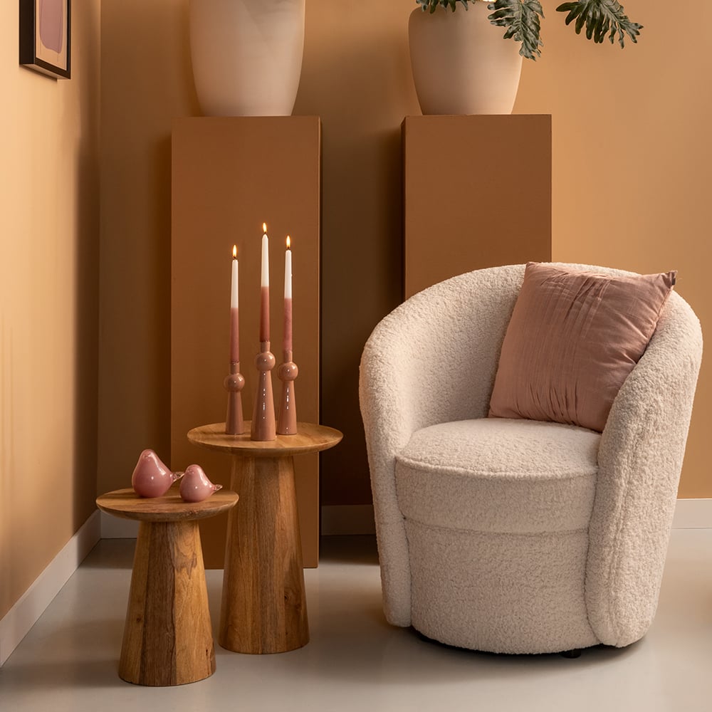 Fabriquée à partir d'un bois de manguier de qualité supérieure, la table d'appoint Vigor fera vibrer la beauté de la nature dans votre intérieur. Son bois robuste au grain somptueux fait de cette table une pièce remarquable qui complémentera avantageusement un large éventail de styles d'intérieur. Disponible dans deux tailles différentes, elle offre une grande polyvalence et saura s'adapter impeccablement à l'esthétique de votre espace, qu'elle soit placée en tant qu'élément autonome ou associée à d'autres meubles.