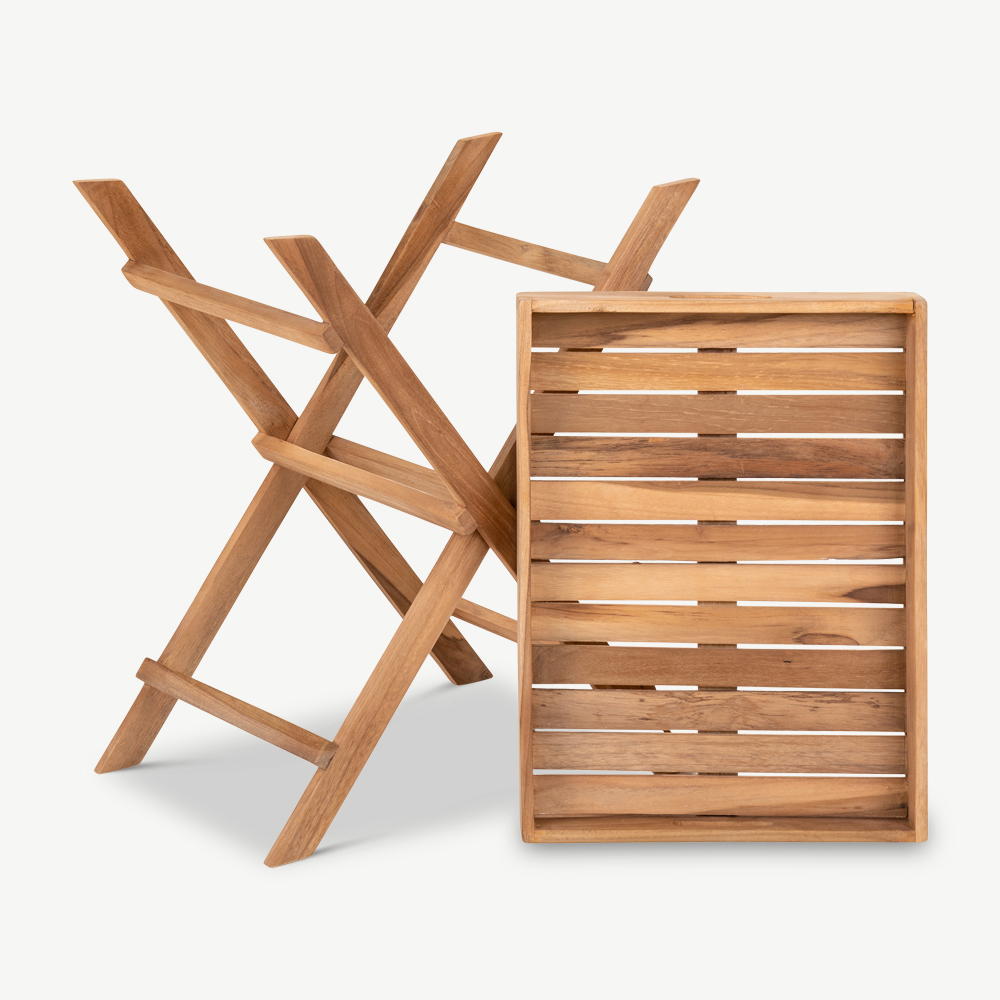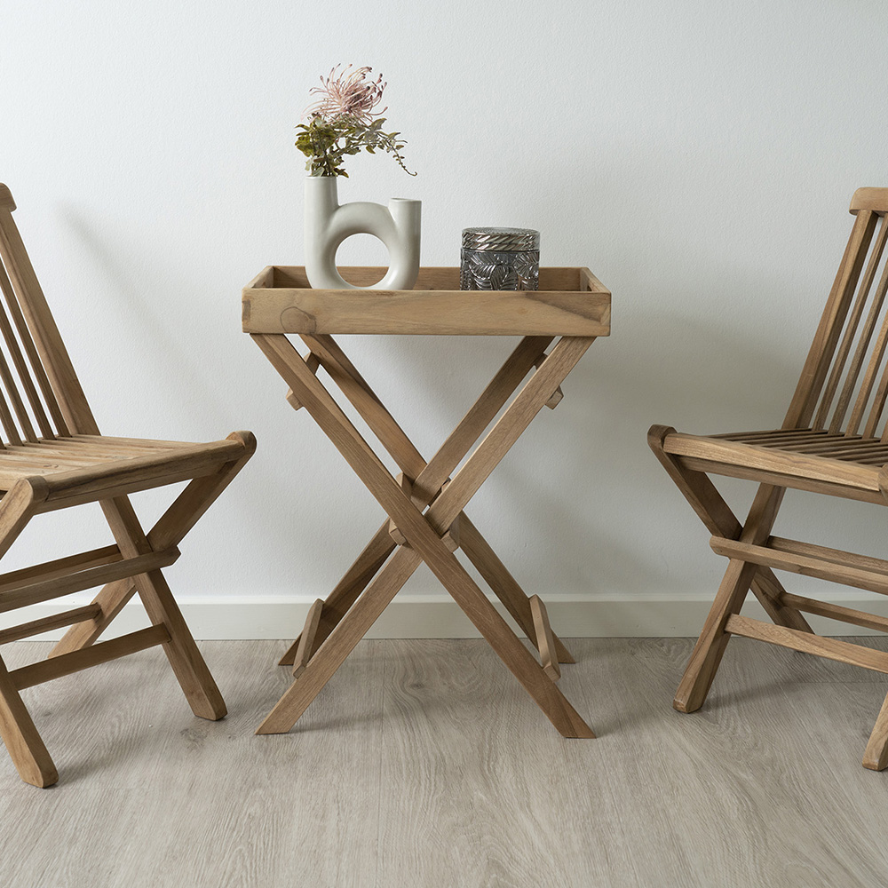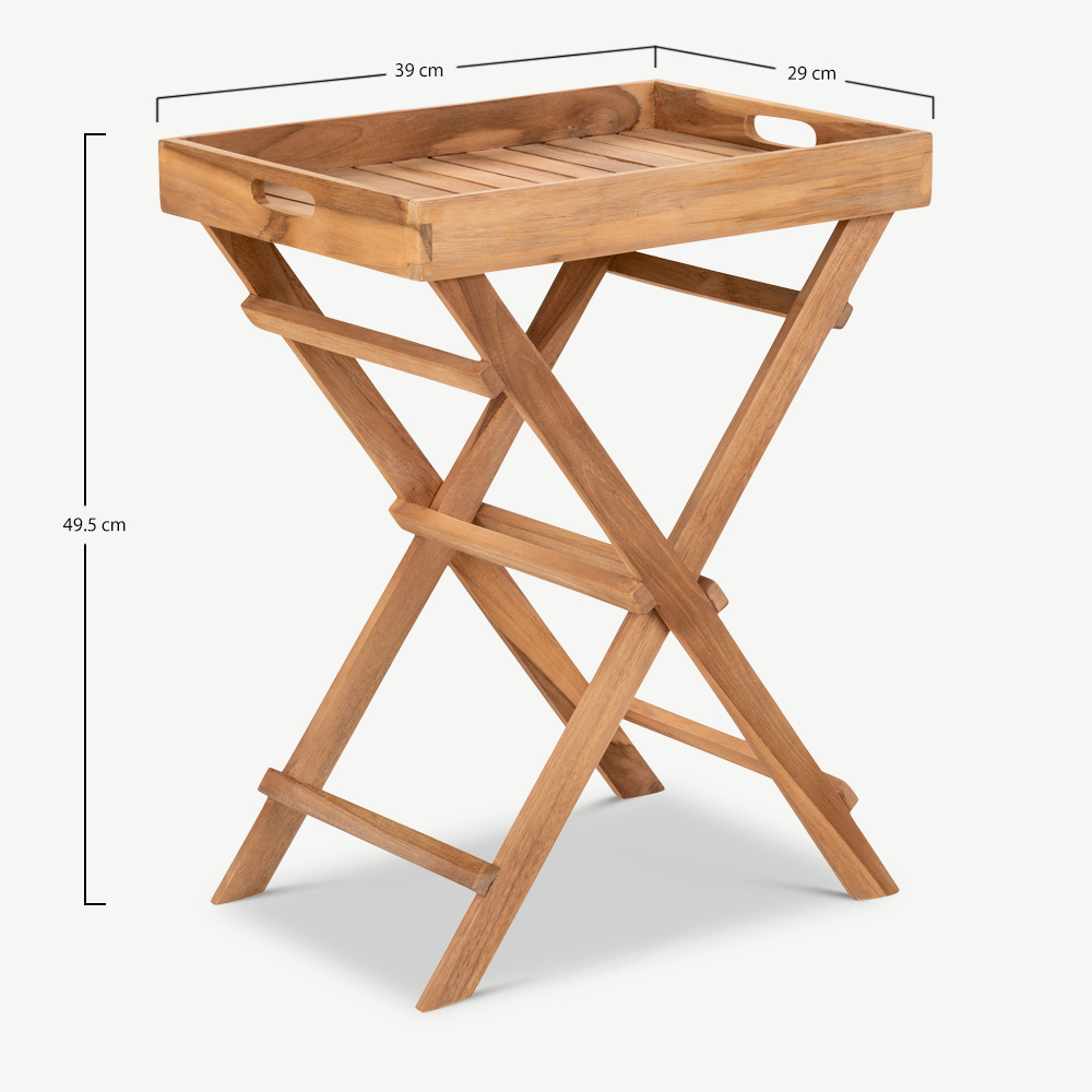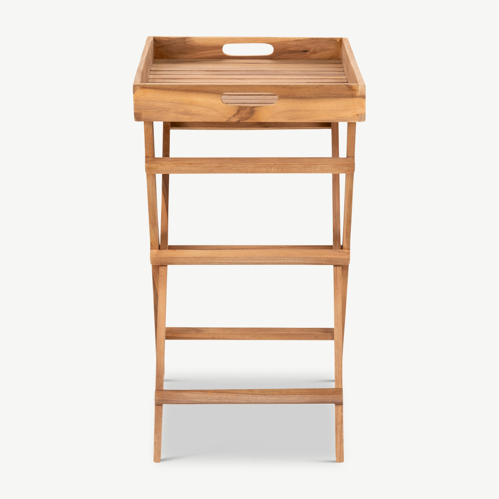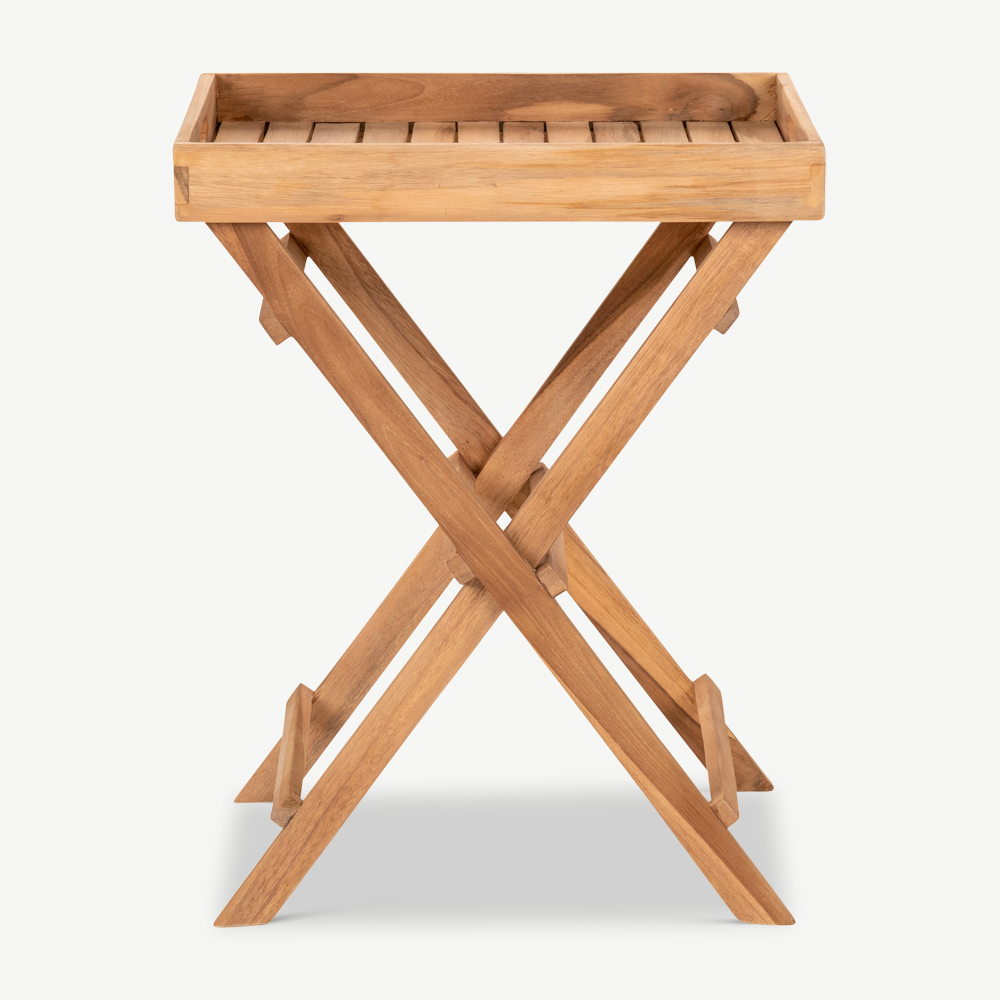 Découvrez la table plateau Aba en teck naturel – un meuble très pratique à ajouter à votre espace extérieur.