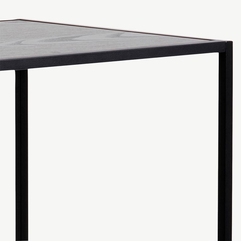 Table Haute Dover avec Plateau Effet Frêne Noir et Structure Métallique Noire – Éléments Naturels et Industriels