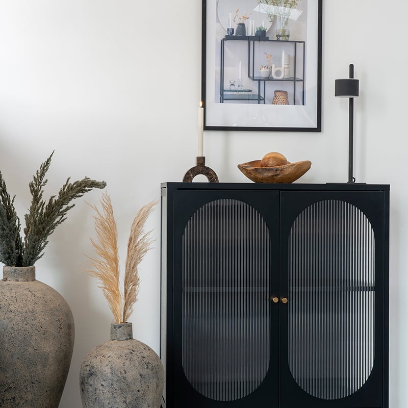 Fabriquée en métal robuste, la vitrine Hobart est conçue pour la durabilité et la stabilité. Son cadre solide est fait pour résister à une utilisation quotidienne, offrant une solution de rangement fiable qui ajoute à la fois fonctionnalité et style aux salons, salles à manger ou bureaux.