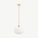 Arga witte glazen hanglamp met houten accent en stalen frame