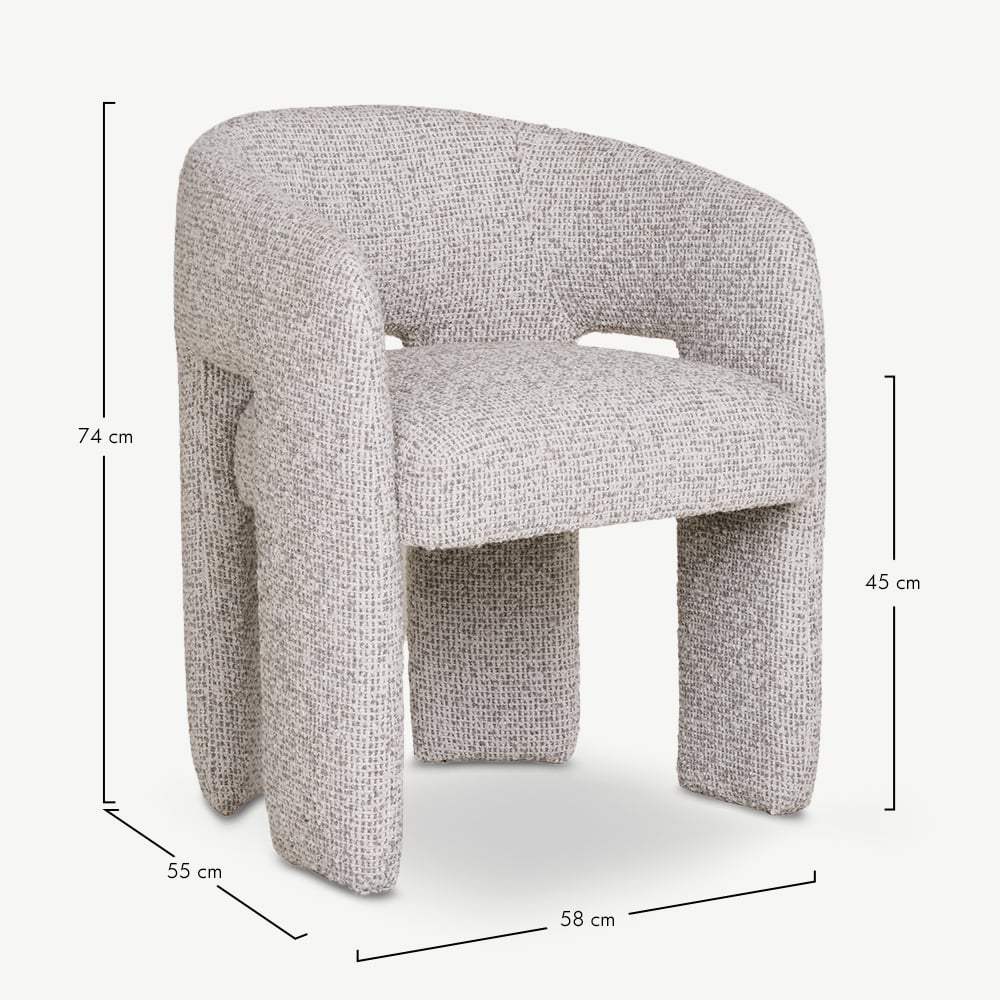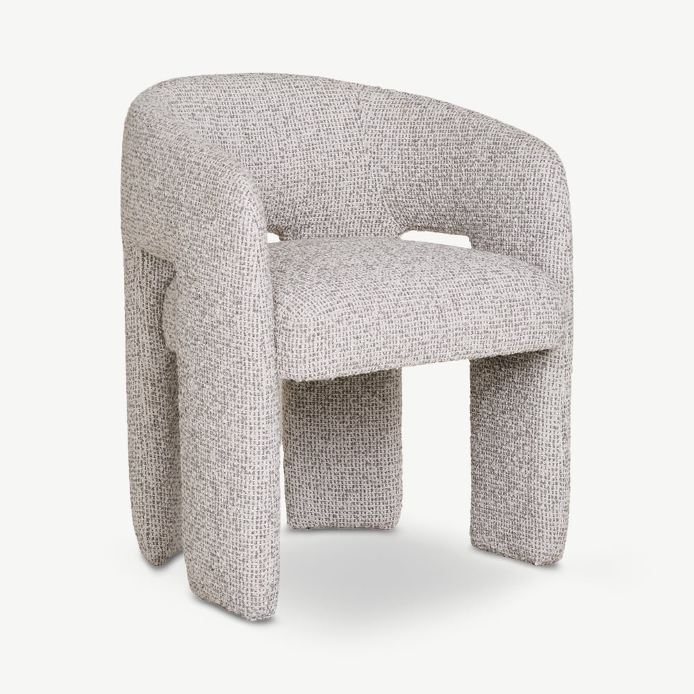 Aspen Natuurlijke Gespikkelde Bouclé Eetkamerstoel – Sculpturaal Comfort met een Scandinavische Touch