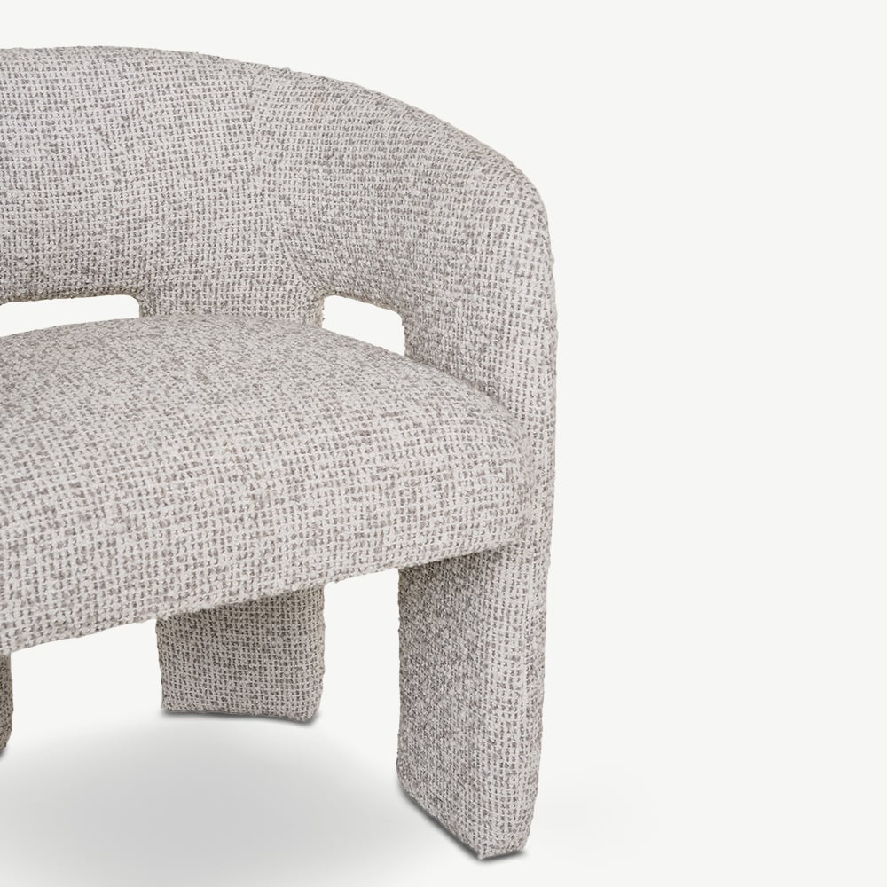 - Natuurlijk gespikkelde bouclé bekleding voor een zachte, gestructureerde uitstraling