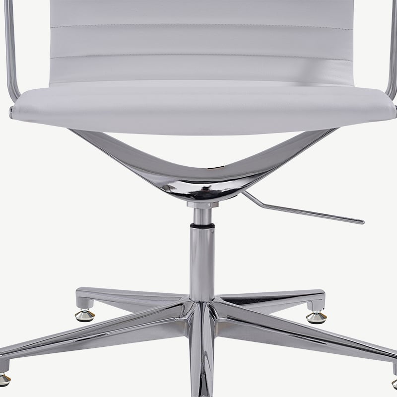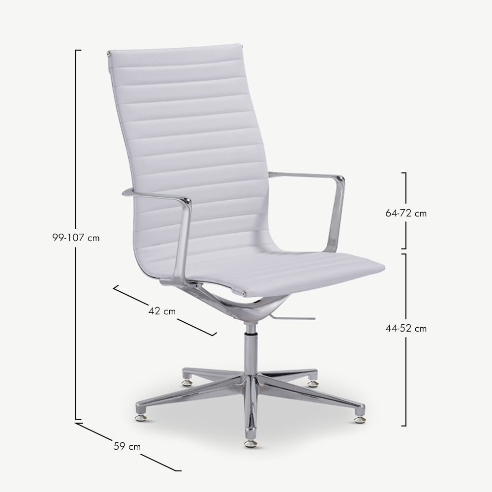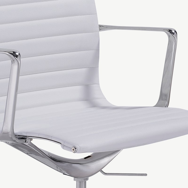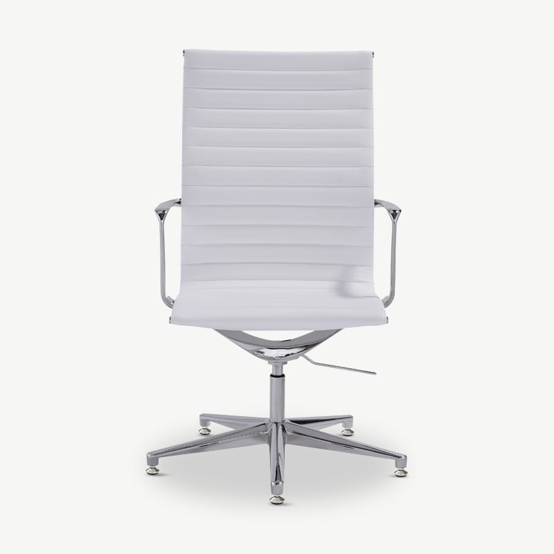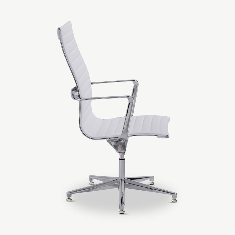 Ava Conferentiestoel van Wit Pu-Leer met Geribbeld Ontwerp, Hoge Rugleuning en Vaste Poten