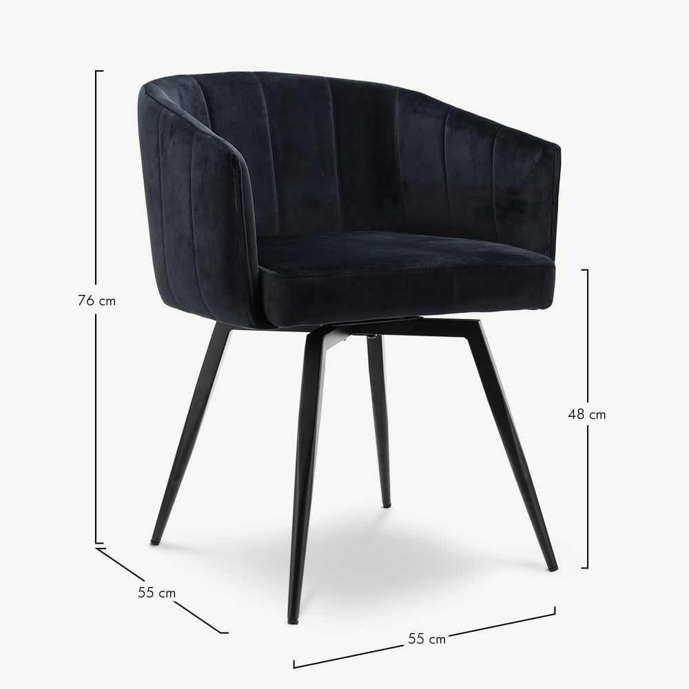 Ben Draaibare Eetkamerstoel, Zwart Velvet