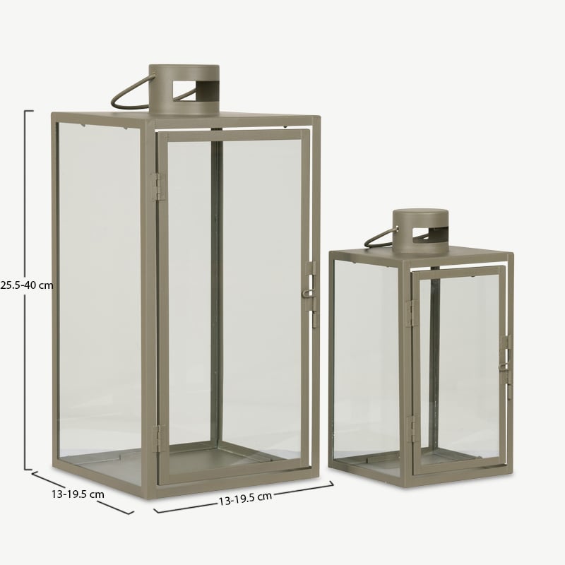 Cape Set van 2 lantaarns, Groen Staal en Glas