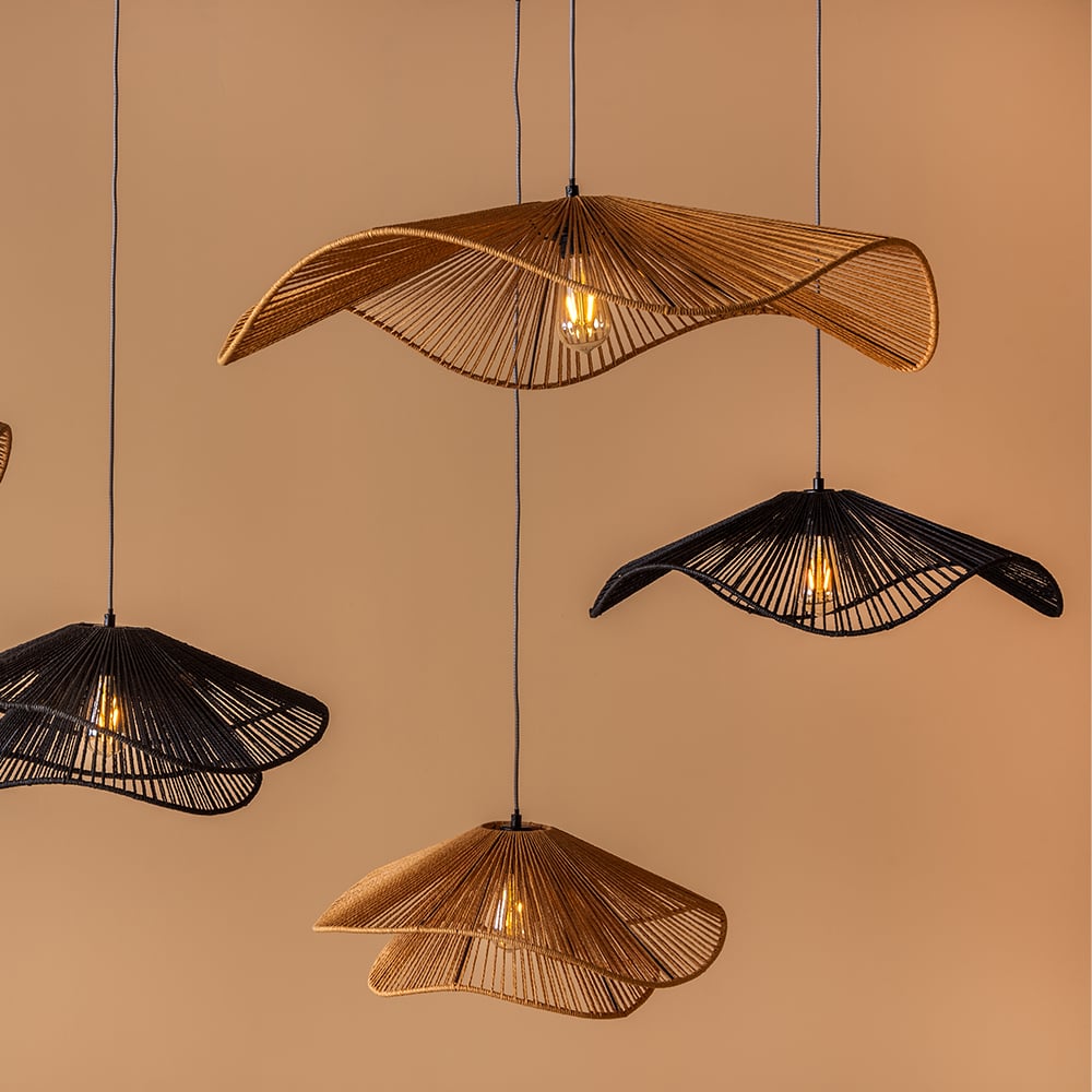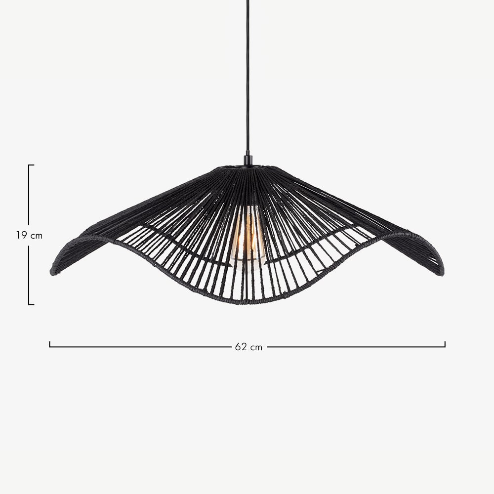 Verkrijgbaar in natuurlijke en zwarte afwerkingen, evenals twee maten en ontwerpen, de Fedora hanglamp van Furnicher biedt flexibiliteit om aan uw specifieke decorbehoeften en voorkeuren te voldoen. Of u nu op zoek bent naar een subtiel accent of een gedurfd middelpunt, deze lamp biedt mogelijkheden om de perfecte sfeer te creëren in uw eetkamer of in elke ruimte die elegante verlichting nodig heeft. Verlicht je huis met de Fedora hanglamp en geniet van de perfecte combinatie van stijl en functionaliteit waar Furnicher bekend om staat.Dimensions