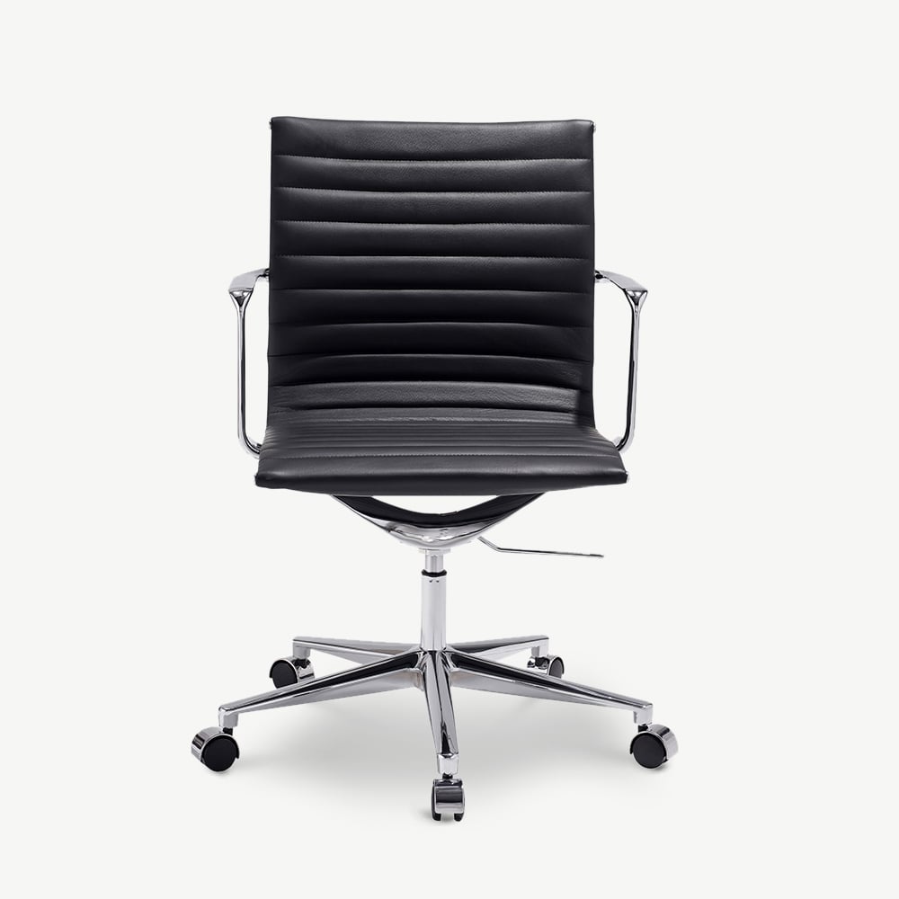 Walton bureaustoel van zwart leer, lage rugleuning