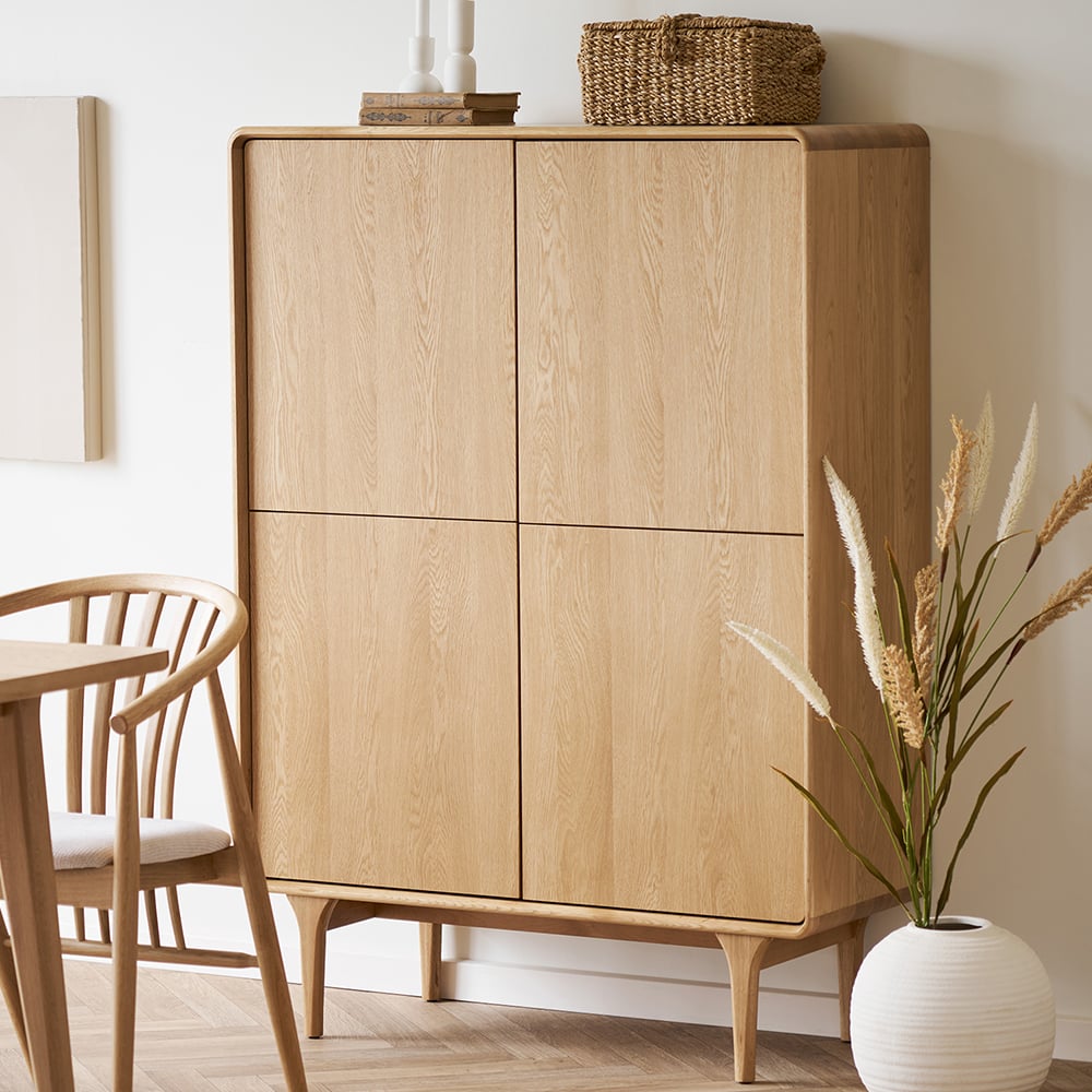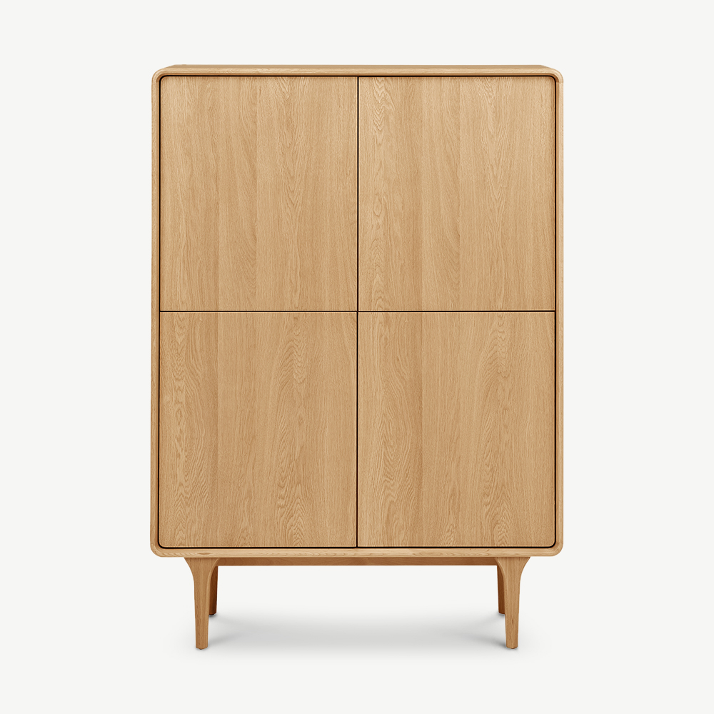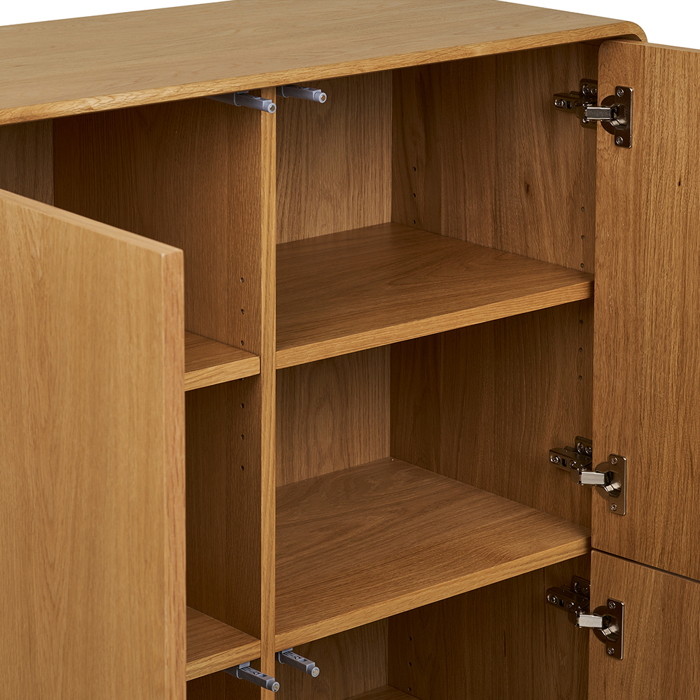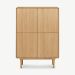 Gemaakt van eikenhout met een gladde, natuurlijke afwerking, viert deze kast minimalistisch design en authentieke materialen. De veelzijdige kleur combineert prachtig met zachte stoffen, keramiek en neutrale tinten, wat zorgt voor een rustig en stijlvol interieur.