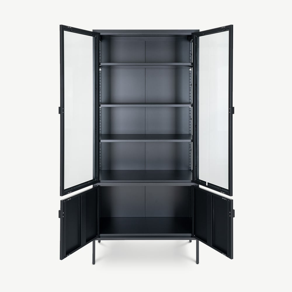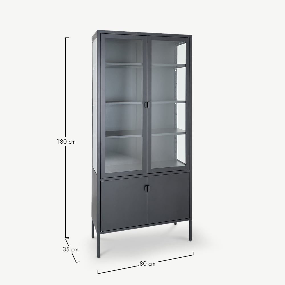 Darwin 4-deurs vitrinekast, glas & zwart metaal