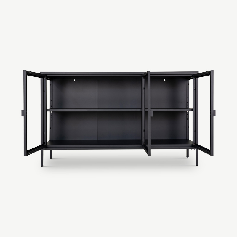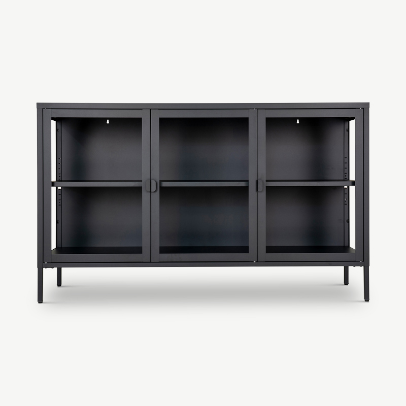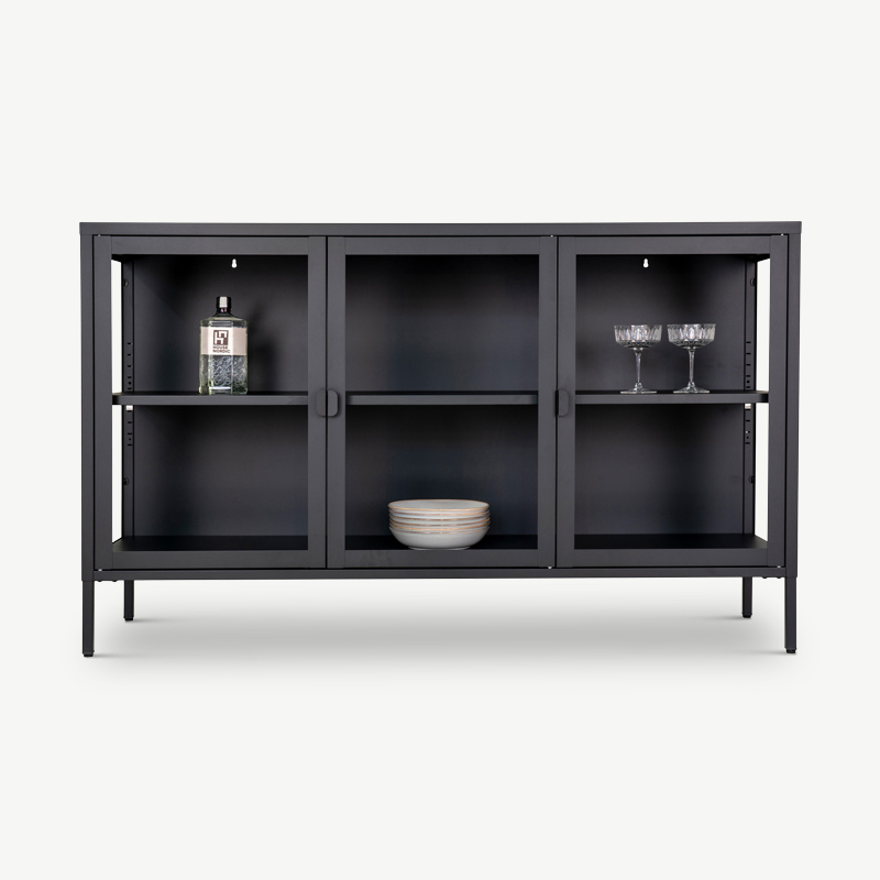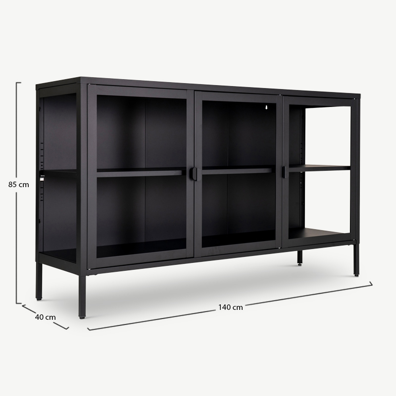 Darwin Dressoir van zwart metaal met drie glazen deuren