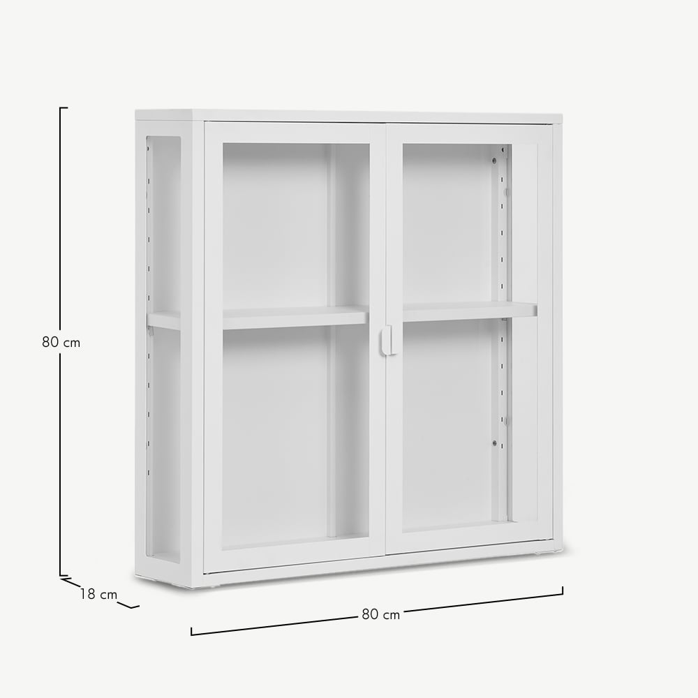 Darwin wandvitrinekast, glas & wit metaal