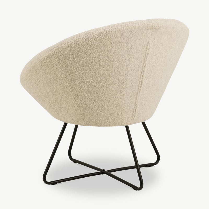Fawn Lounge Chair in Crème Bouclé met Gekruiste Metalen Poten