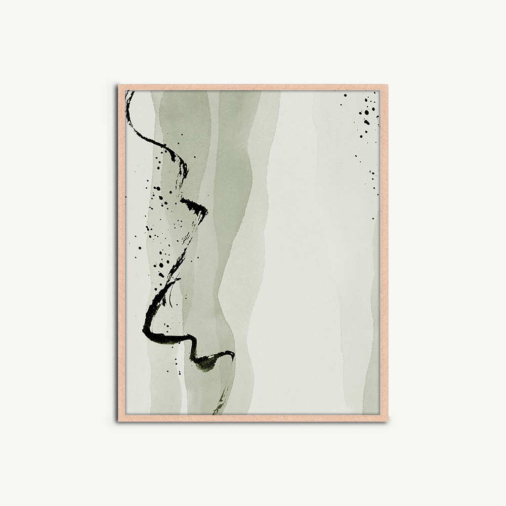 De Green Abstract Waves poster wordt geleverd in een natuurlijke lijst, bekend om zijn duurzaamheid en natuurlijke schoonheid. Het houten frame omlijst de abstracte poster op een manier die diepte en dimensie toevoegt, waardoor het een echt middelpunt in je interieur wordt.
