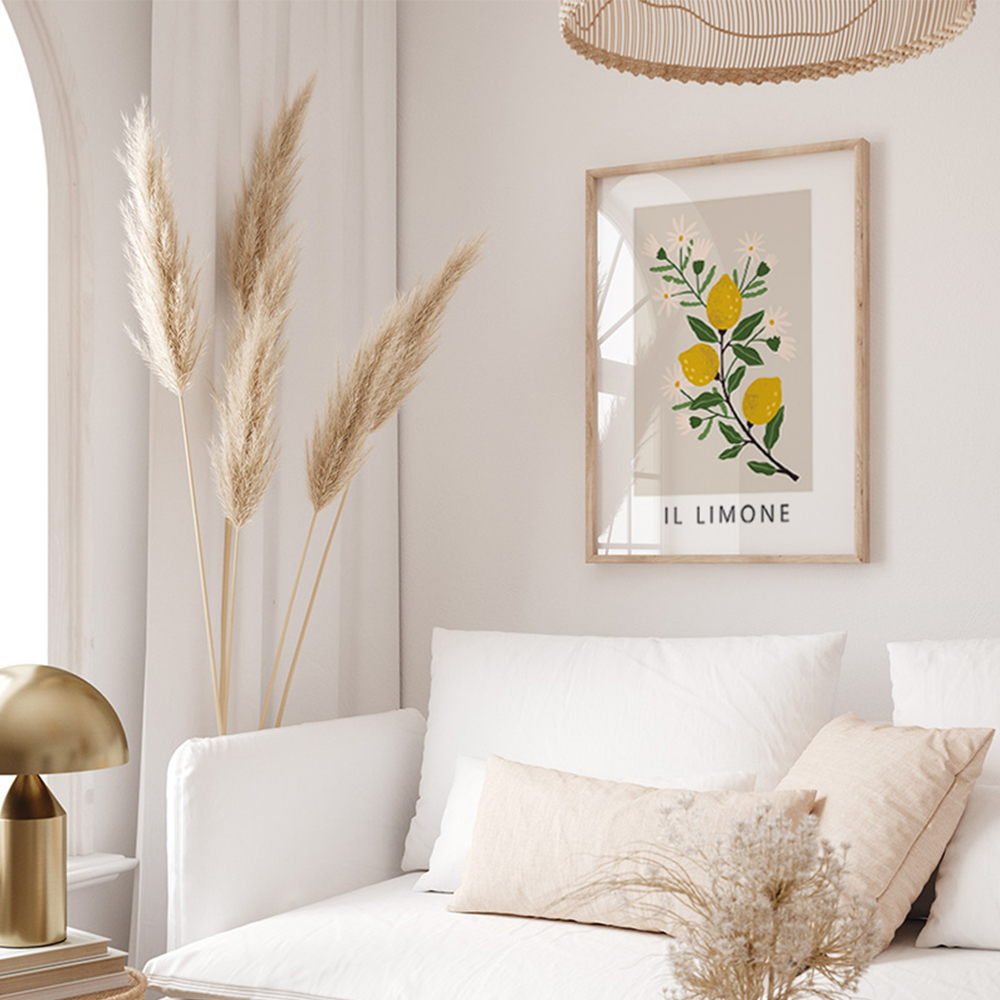 De Il Limone poster is een prachtige toevoeging aan elke ruimte. Deze poster voor de woonkamer komt tot leven in een stijlvolle print met een dun frame van natuurlijk beukenhout, wat zorgt voor een verfijnde uitstraling.