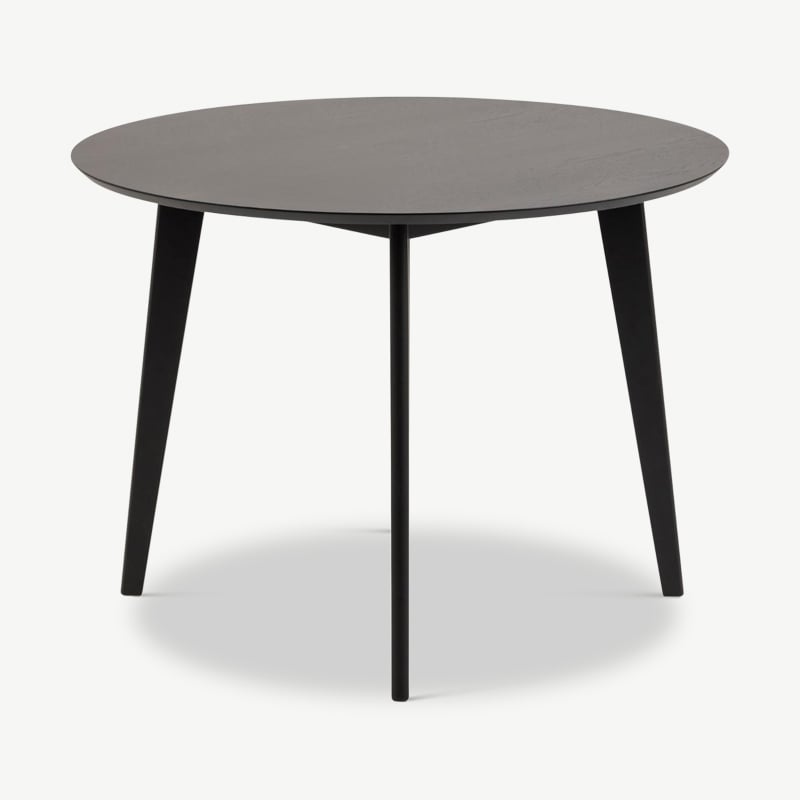 Upgrade je eetruimte met de India Ronde Eettafel, voorzien van een strak zwart houten plateau en stevige houten poten. Met een diameter van 105 cm is deze tafel perfect voor kleinere ruimtes en biedt hij een stijlvolle, intieme setting voor maximaal 4 personen. Zijn moderne en tijdloze design past moeiteloos in diverse interieurs.