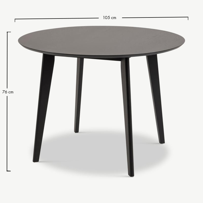 Met een compacte diameter van 105 cm is deze ronde eettafel een uitstekende keuze voor appartementen, ontbijthoeken of kleine eetruimtes. Hij biedt comfortabel zitplek aan maximaal 4 personen, waardoor er een gezellige sfeer ontstaat voor maaltijden en gesprekken. De stevige, taps toelopende poten zorgen voor optimale stabiliteit en duurzaamheid, ideaal voor dagelijks gebruik.