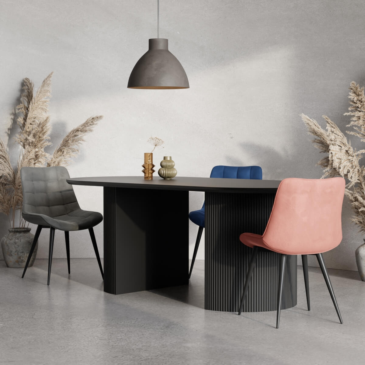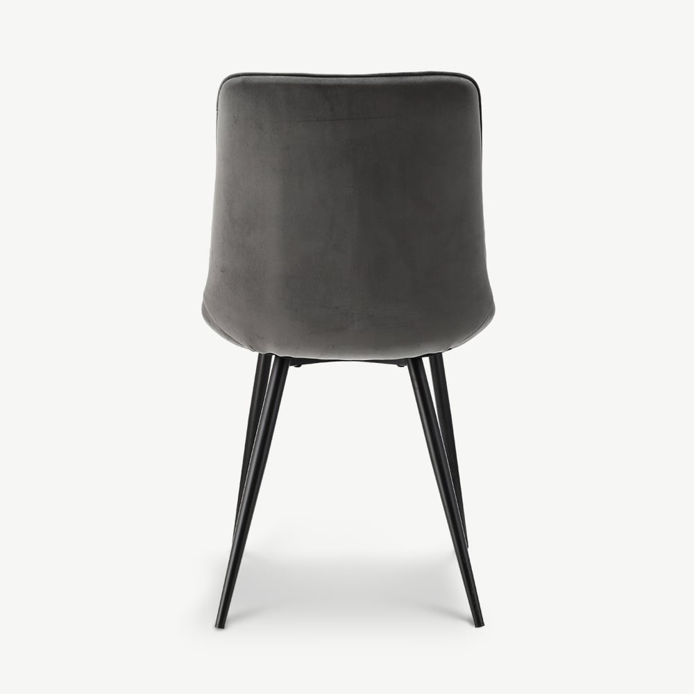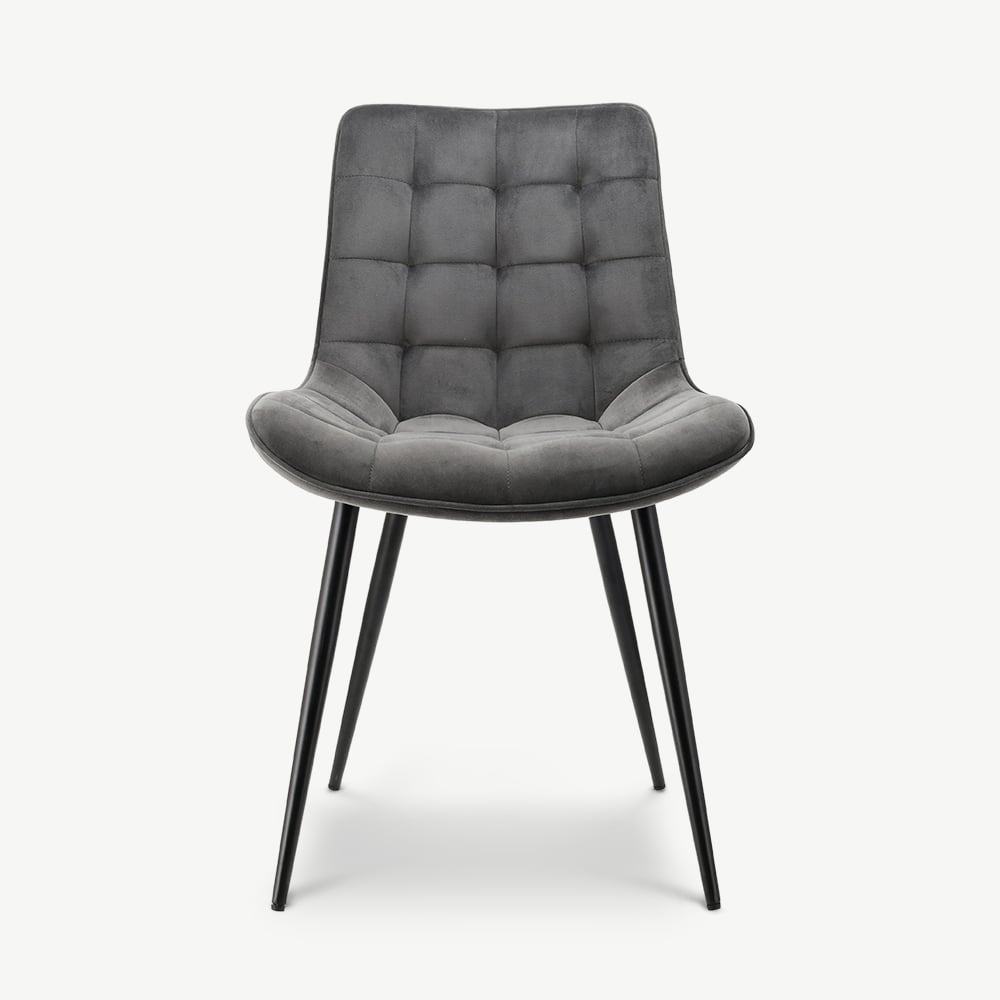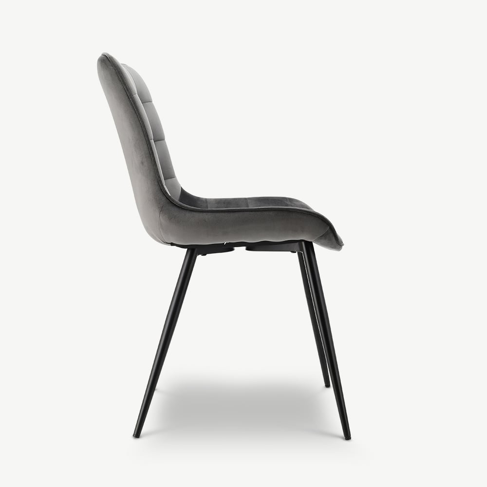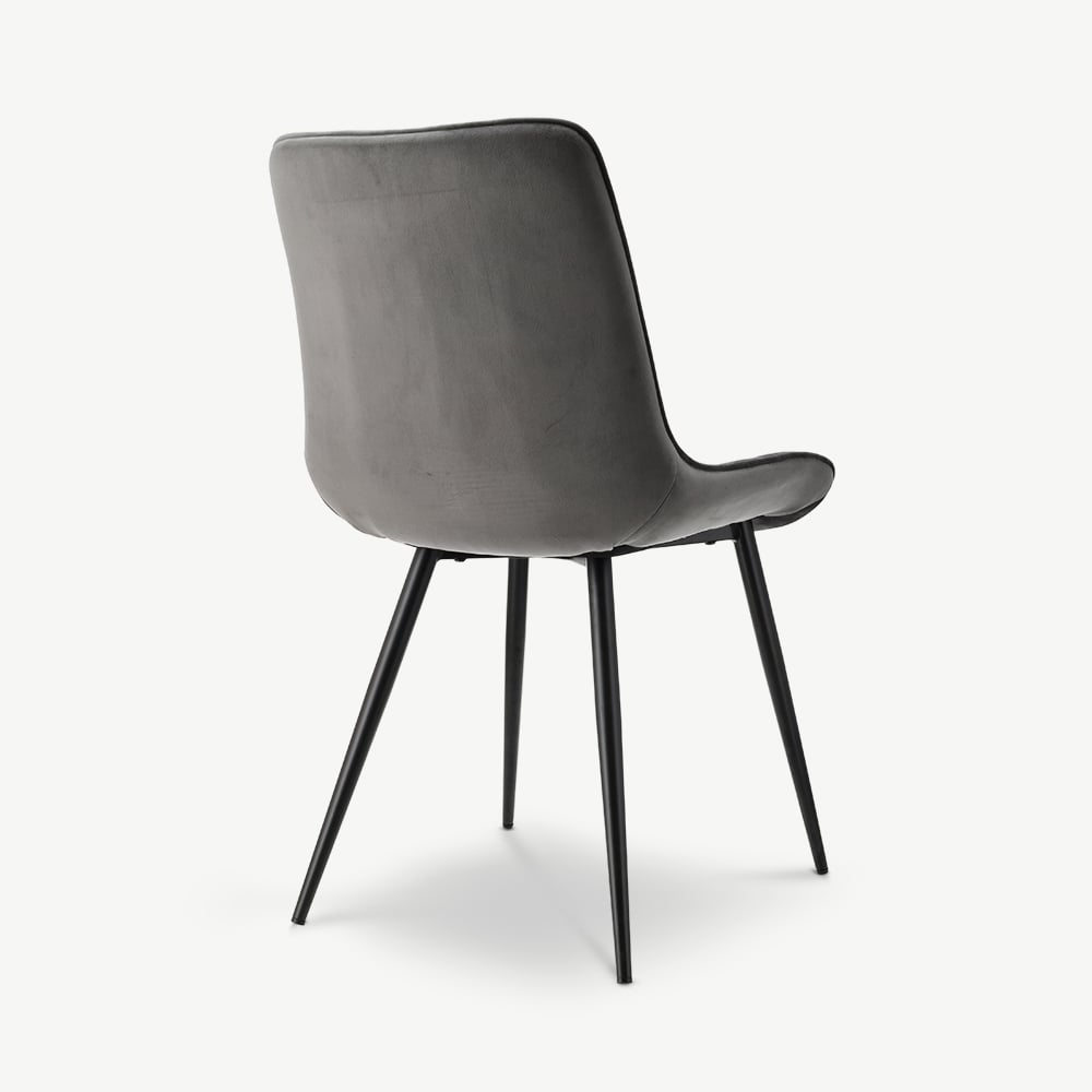 Lisboa Eetkamerstoel van Grijze Velvet met Gestikte Bekleding en Zwarte Metalen Poten