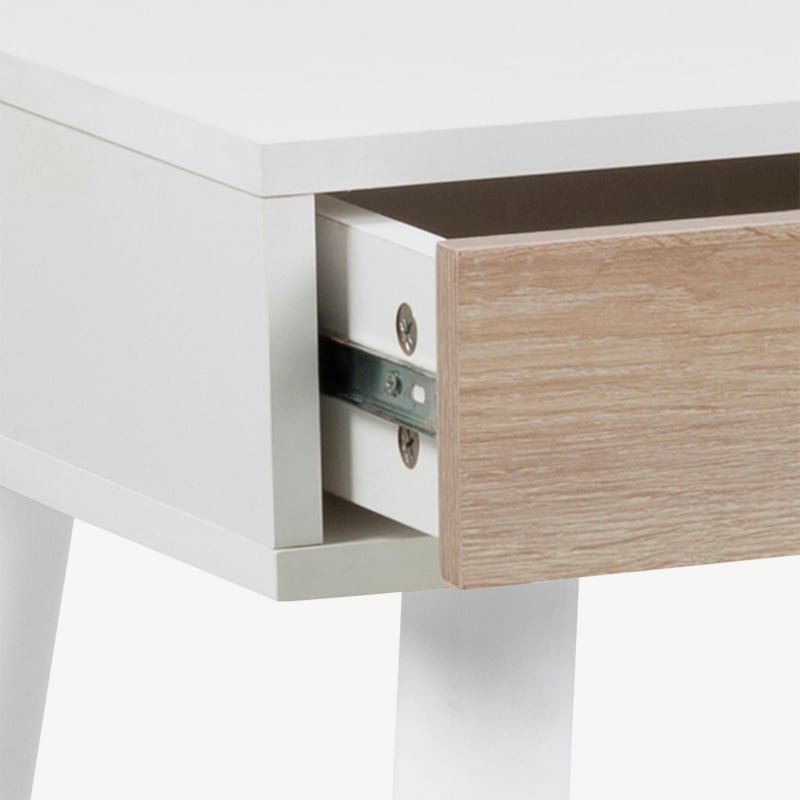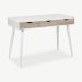 Een wit houten bureau met metalen poten zoals Mana komt zeker tot zijn recht in je kantoor, waarbij stijl en functionaliteit moeiteloos worden gecombineerd.