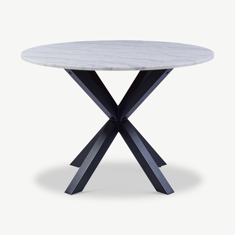 Talon Ronde Eettafel van Wit Marmer met Zwarte Metalen Poten – Voor 4 Personen – Ø110 cm