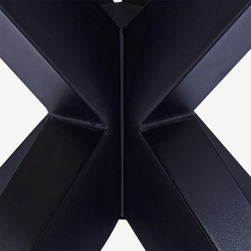 - Zwarte, grof gepoedercoate gekruiste metalen poten