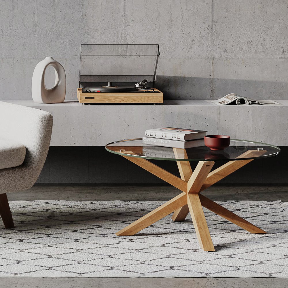 Talon Ronde Salontafel, Glas & Eiken Afwerking
