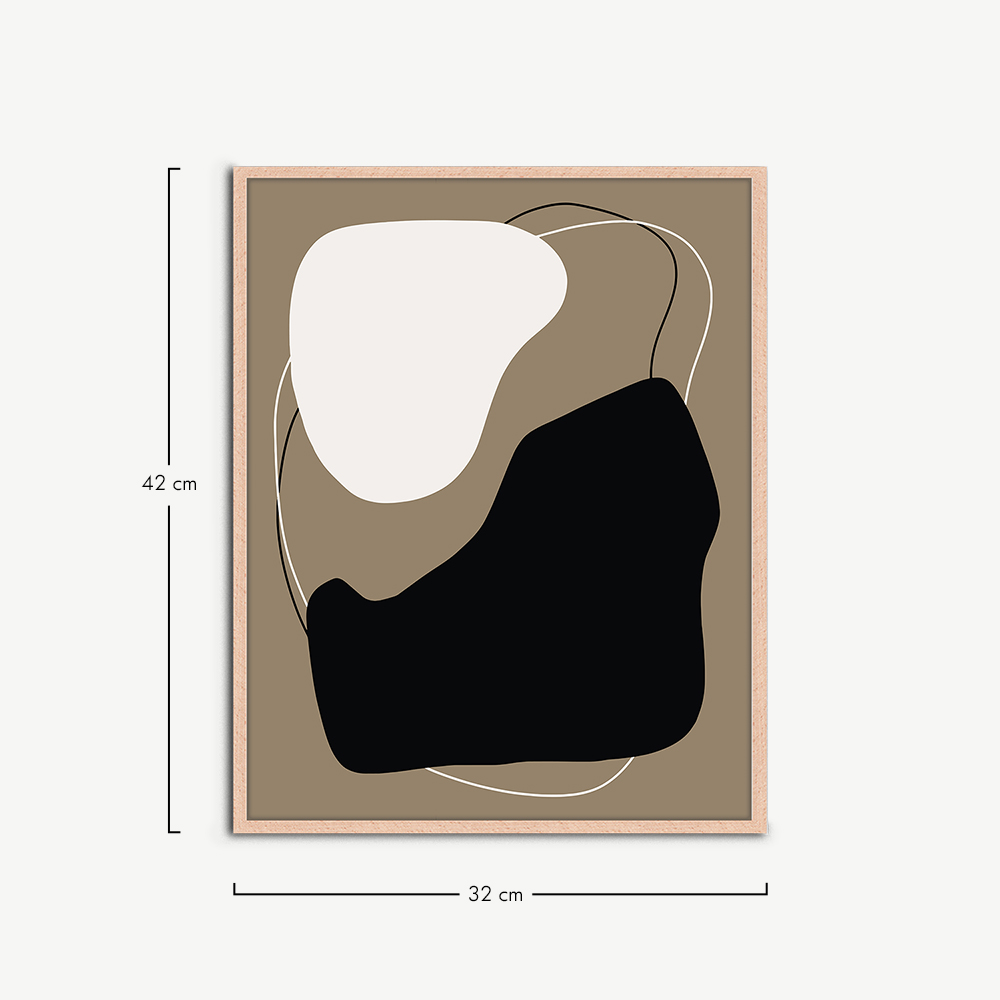 De Trendy Abstract poster wordt geleverd in een natuurlijke lijst, bekend om zijn duurzaamheid en natuurlijke schoonheid. Het houten frame omlijst de abstracte poster op een manier die diepte en dimensie toevoegt, waardoor het een echt middelpunt in je interieur wordt.