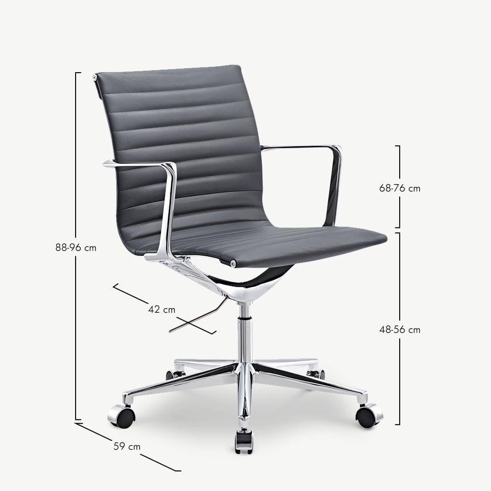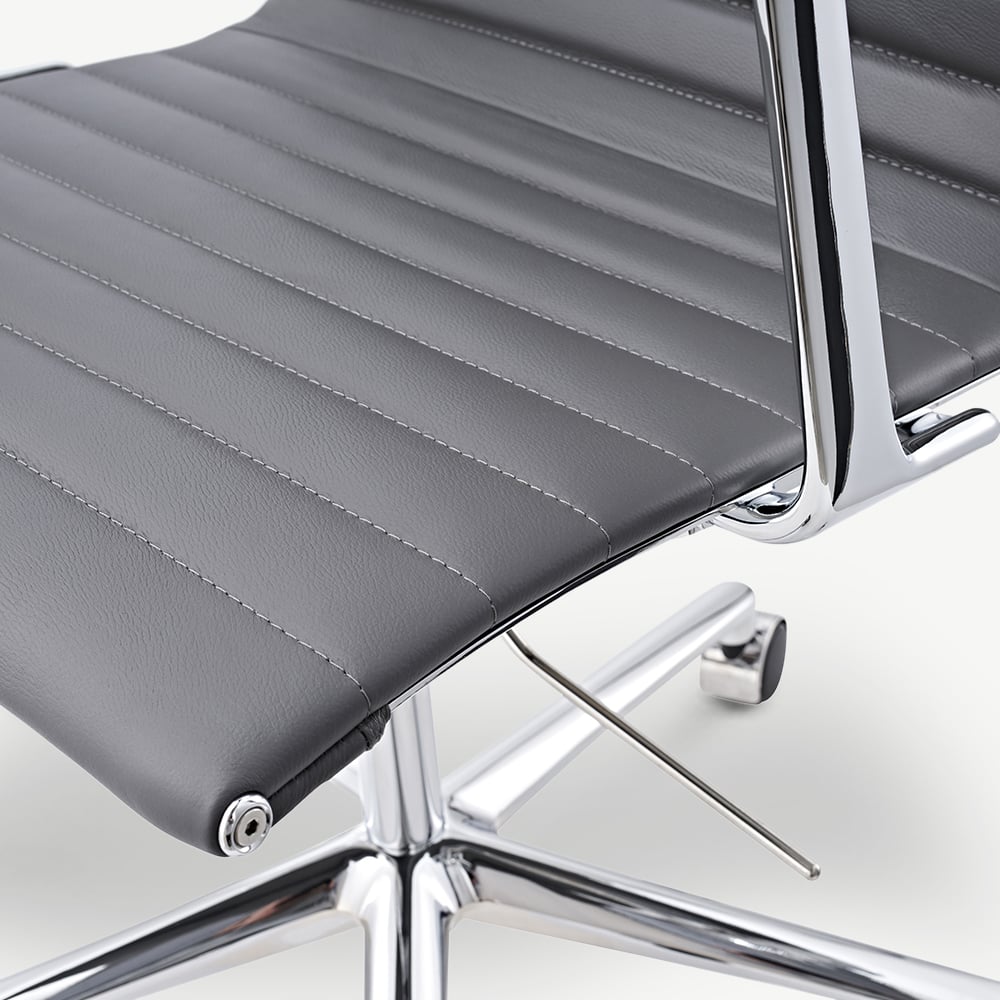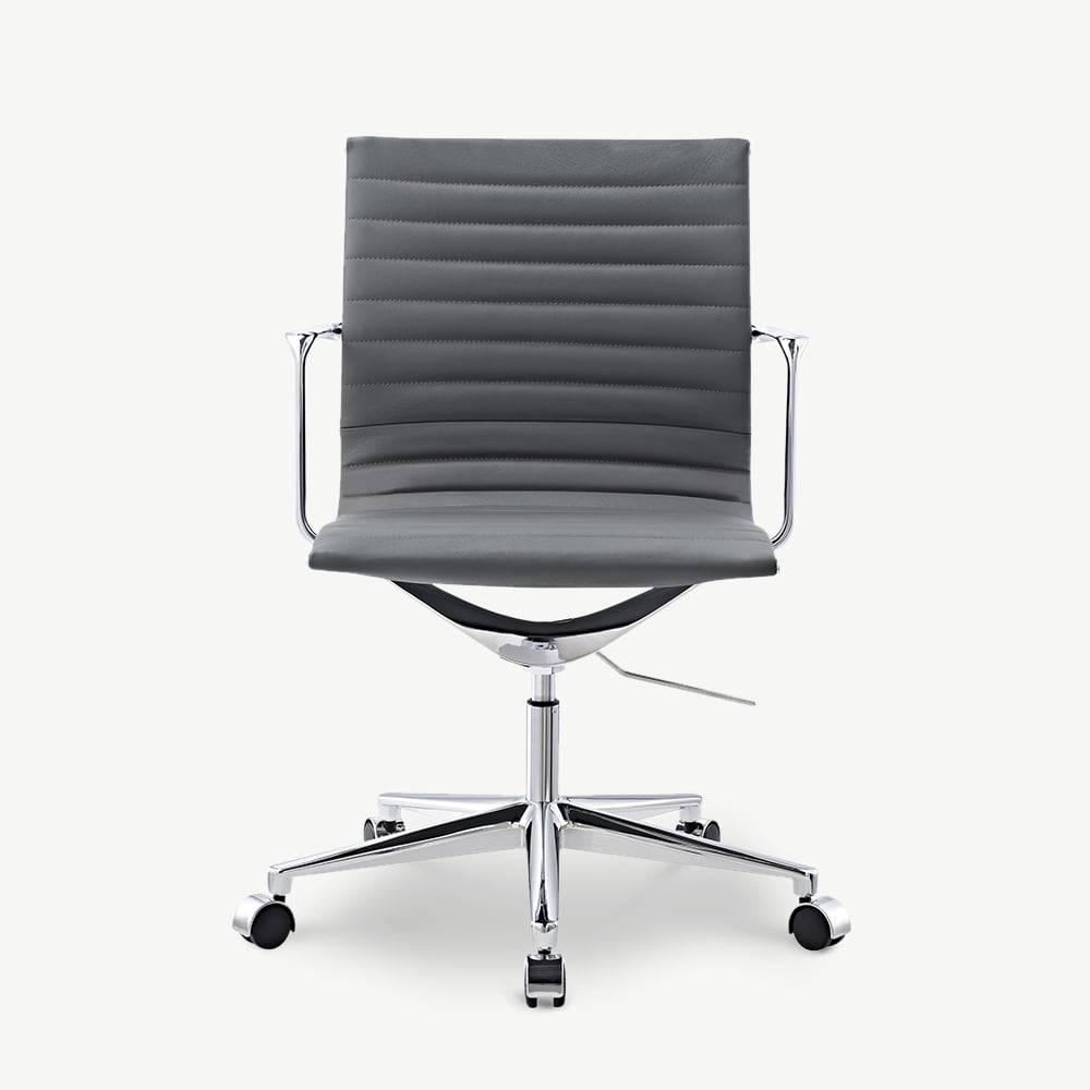 Walton Bureaustoel van Grijs Leer met Geribbeld Ontwerp en Lage Rugleuning