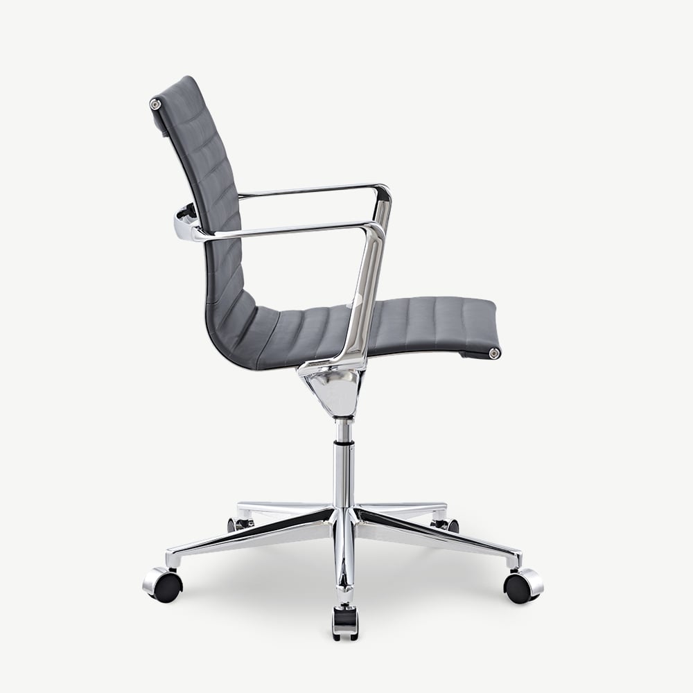 Walton bureaustoel van grijs leer, lage rugleuning