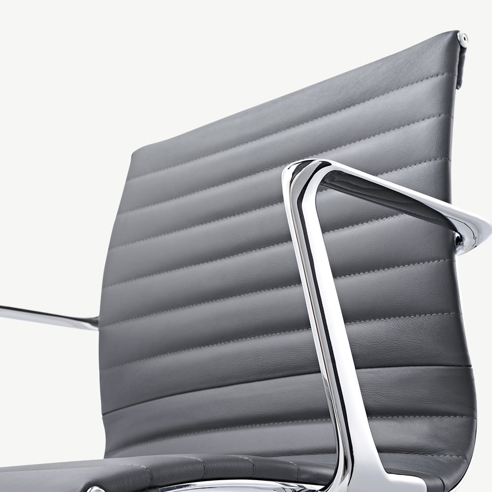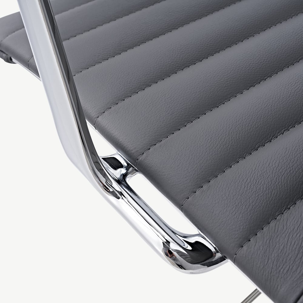 Met een stevig frame van chromen metaal combineert deze stoel stijl met stevigheid. De mid-century ontwerpelementen, in combinatie met de lage rugleuning, geven elke werkplek een tijdloze en elegante uitstraling.